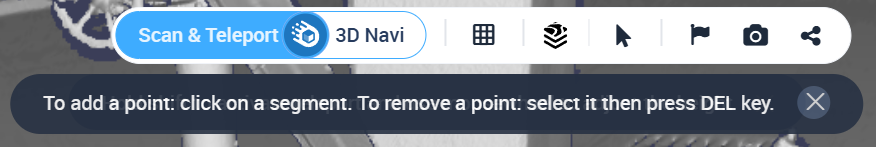 Um einen Punkt hinzuzufügen, klicken Sie auf ein Segment. Um Punkte zu löschen, wählen Sie einen Punkt aus und drücken Sie Entfernentaste auf der Tastatur. Ein Hinweis wird unter der Navigationsleiste in der 3D-Ansicht angezeigt.