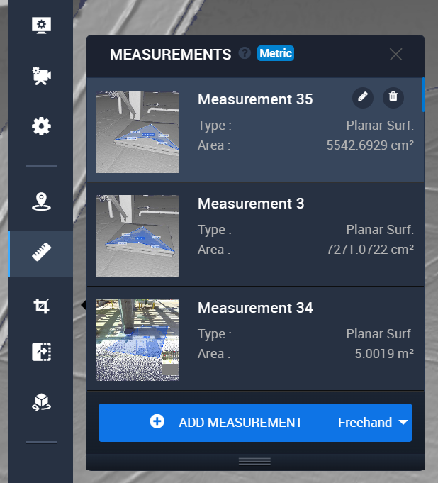 1. Klicken Sie auf das Messungen Symbol in der vertikalen Werkzeugleiste auf der linken Seite des Bildschirms.