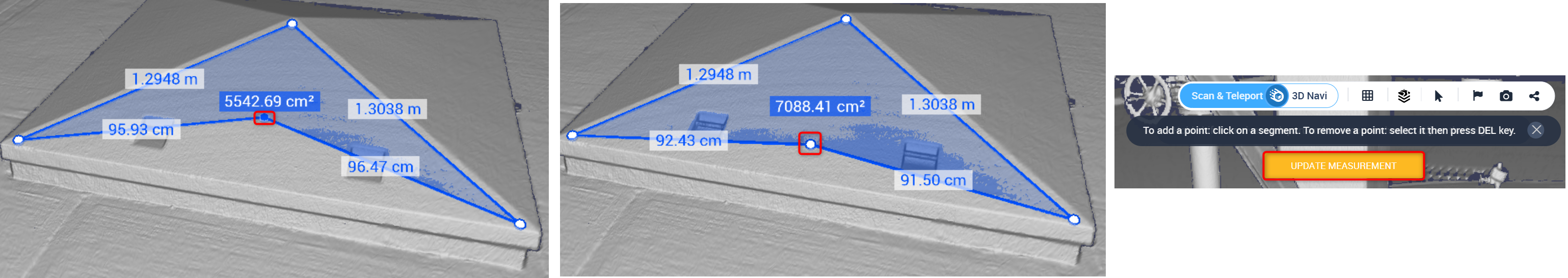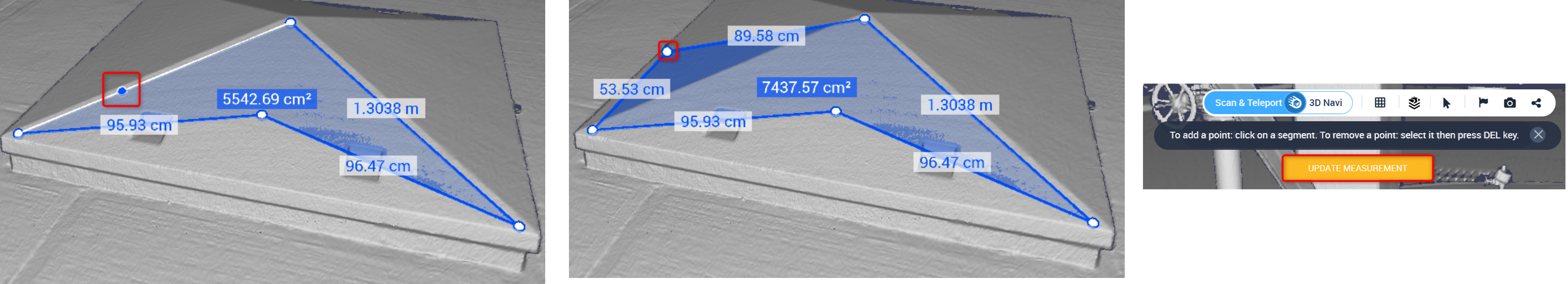 - Ziehen und verschieben Sie vorhandene Punkte, um die Form einer planaren Flächenmessung zu ändern.
