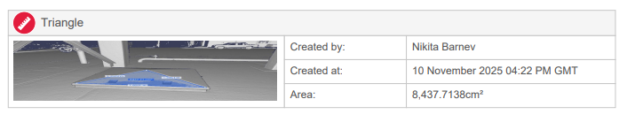 6. Planare Oberflächenmessung wird im Messungen -Tab in der entsprechenden Arbeitszone gespeichert.