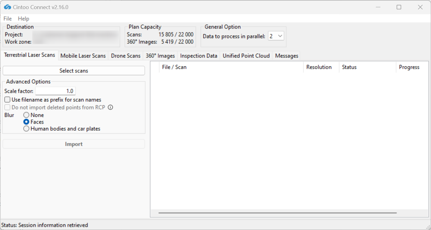 - Any files uploaded without Blur Faces option enabled must be deleted from Cintoo project and re-uploaded with the option checked to apply automatic face blurring.