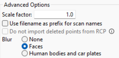 - Any files uploaded without Blur Human bodies and car plates option enabled must be deleted from Cintoo project and re-uploaded with the option checked to apply automatic blurring.