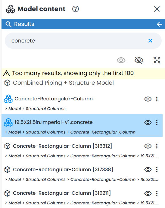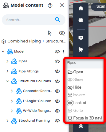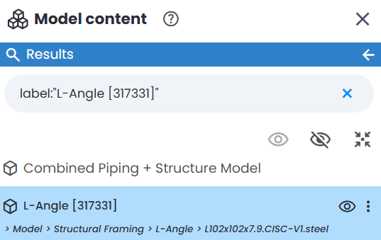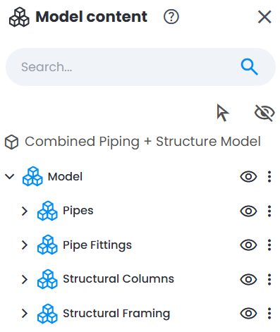 Picking a model element in 3D View will automatically open Model Content Explorer (if it is not already open). It will also automatically highlight the selected element in model hierarchy to quickly access its properties or isolate it for analysis.