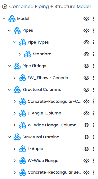 In addition, tools to the right of the item could be used to hide/show the model. Use 3 dots to: