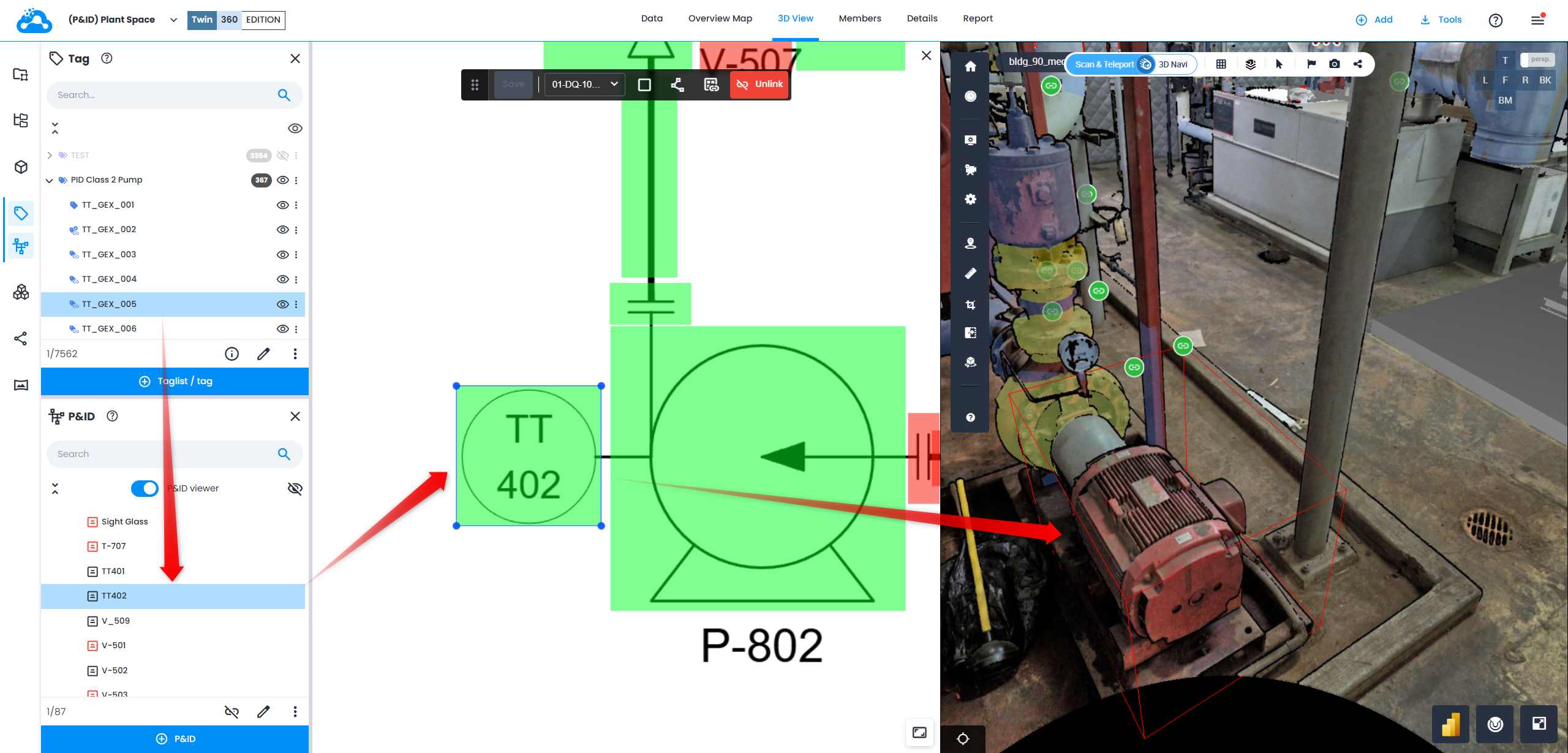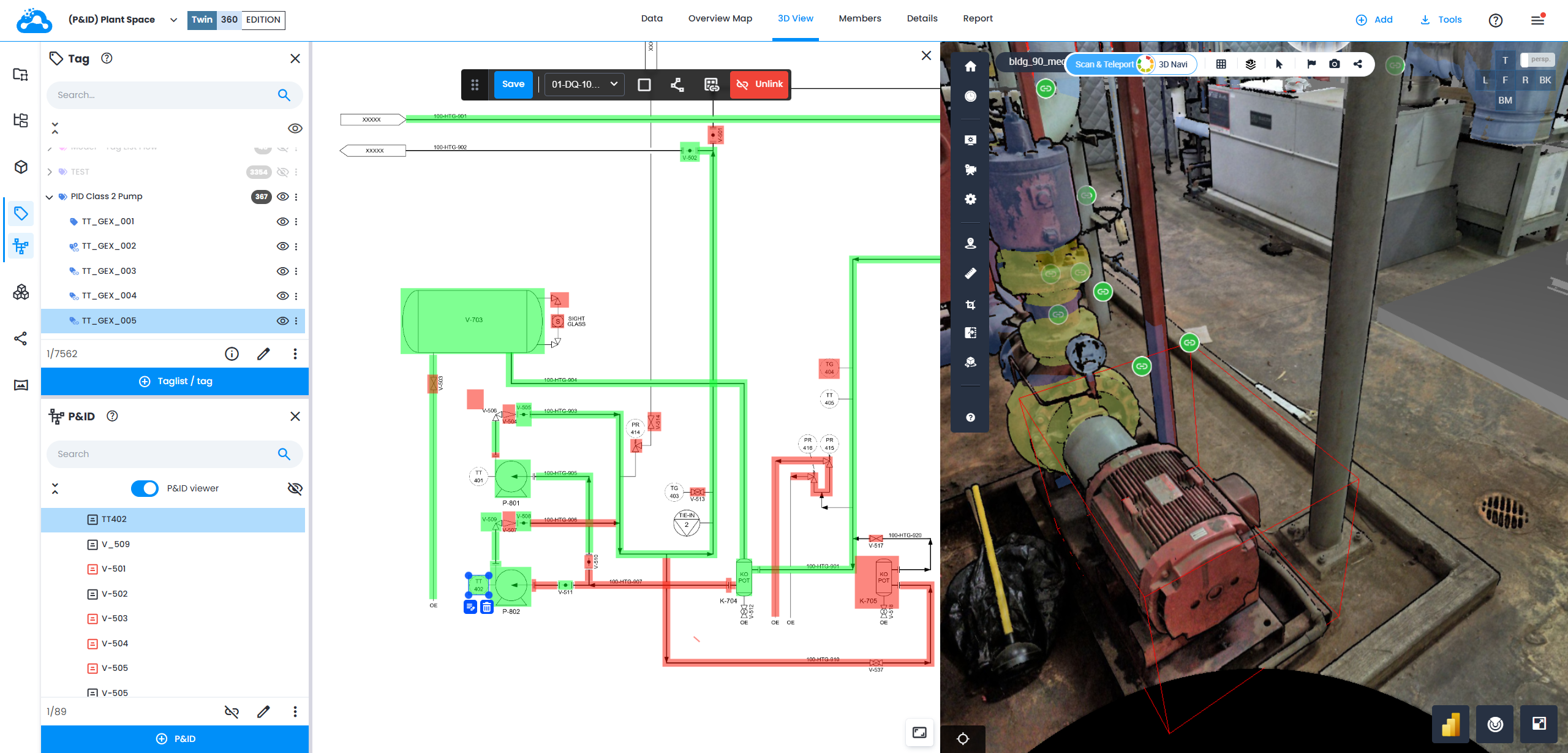 6. In 3D View tags that are linked to P&ID items are marked with a green link sign.