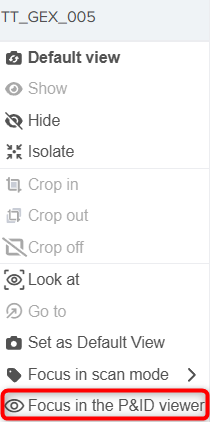 - Focus - opens corresponding P&ID page centered on the selected element. Also available from right mouse button click on an element.