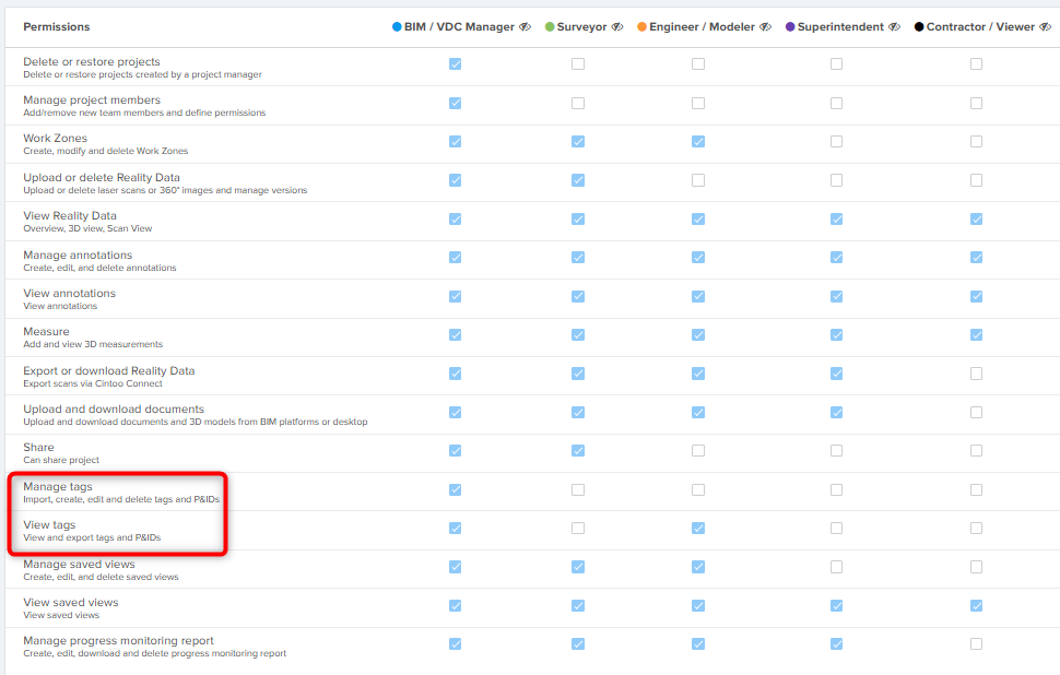 Les outils de balisage et d'affichage des actifs de Cintoo sont associés à deux permissions :