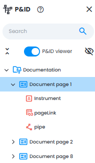 L'interface de l'Explorateur P&ID est similaire à celle d'autres explorateurs sauf qu'il y a un bouton pour afficher le Visualiseur P&ID en haut.